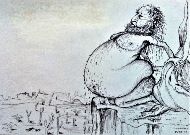 “The Sorcerer”, pencil and sanguine on paper, 33 x 48 cm, 2000