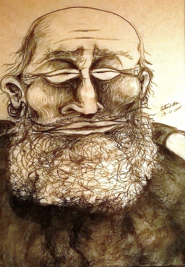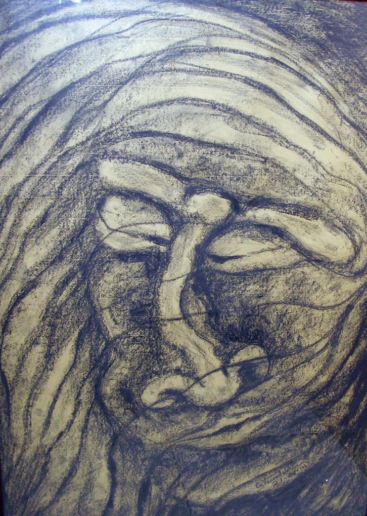 “A face in meditation”, charcoal on paper, 50 x 70 cm, 2000