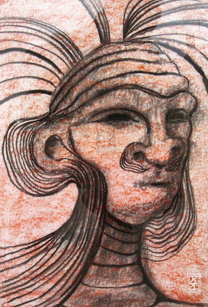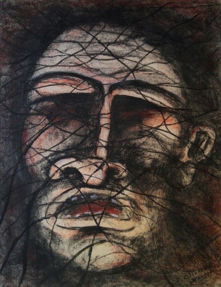 “Desperate”, charcoal, sanguine and colored chalks on paper, 70 x 50 cm, 2000