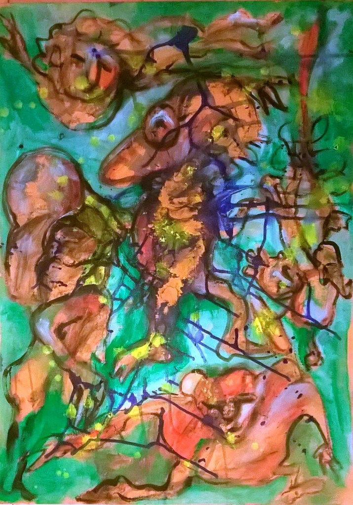 “Orgasm”, acrylic and mixed media on paper, cm 48 x 33, 2015
