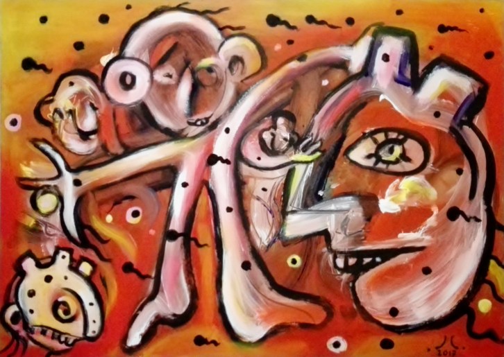 “Relazioni”, acrylic on wood panel, cm 60 x 80, 2017