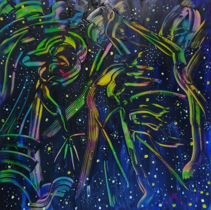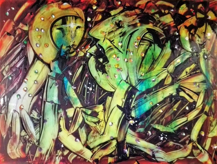 “Stars woman and man”, acrylic on plexiglass, cm 80 x 60, 2017 – published in a book of short stories by Pina Magro: “La dama in verde”