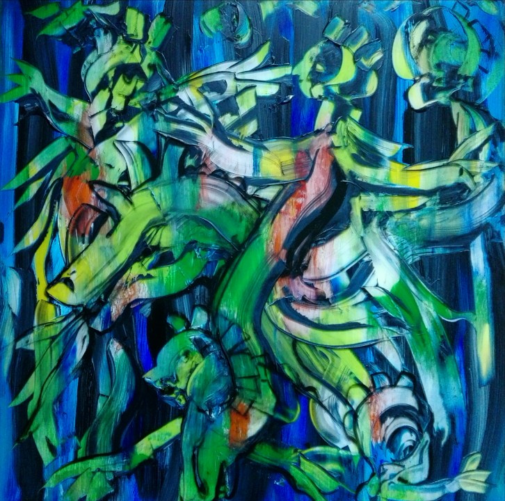“Wild colour souls”, acrylic on plexiglass, cm 100 x 100, 2017